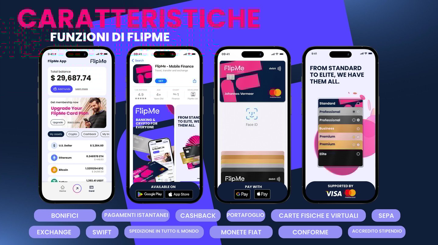 FlipMe è disponibile a livello globale tramite App Store e Google Play Store per miliardi di persone alla ricerca di una soluzione moderna per il banking e le criptovalute.